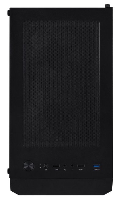 Konektory na hornom paneli: 1× USB 3.0, 2× USB 2.0, 1× slúchadlový výstup, 1× vstup pre mikrofón