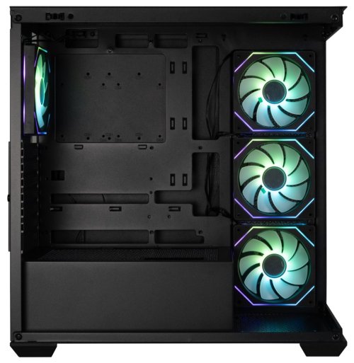Herná počítačová skriňa ponúka štýlovú presklenú bočnicu aj predný panel a prvotriednu kovovú konštrukciu. Skriňa je osadená štyrmi ventilátormi o veľkosti 120 mm s ARGB podsvietením a efektom nekonečného zrkadlenia . Poteší tiež možnosť rozšírenia o ďalšie 3 ventilátory. Samozrejmosťou sú aj prachové filtre . Dômyselné riešenie umožňuje pohodlné umiestnenie až 360 mm dlhého výmenníka vodného chladenia na hornej strane. V skrini je dostatok priestoru pre chladič CPU do výšky až 181 mm a grafickú kartu s dĺžkou až 410 mm. Na hornom paneli sa nachádzajú dva porty USB 3.0 , jeden port USB-C , slúchadlový výstup a vstup pre mikrofón. Skriňa je dodávaná bez zdroja .