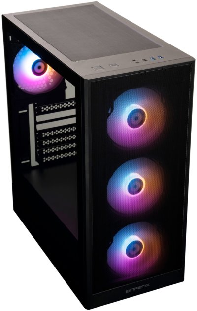 Herná počítačová skriňa ponúka štýlovú presklenú bočnicu , polopriehľadný predný panel a prvotriednu kovovú konštrukciu. Skriňa je osadená štyrmi ventilátormi o veľkosti 120 mm s RGB podsvietením. Poteší tiež možnosť rozšírenia o ďalšie 2 ventilátory. Dômyselné riešenie umožňuje pohodlné umiestnenie až 360 mm dlhého výmenníka vodného chladenia na prednej strane a 280 mm na vrchnej strane. V skrini je dostatok priestoru pre chladič CPU do výšky až 163 mm a grafickú kartu s dĺžkou až 360 mm. Na hornom paneli sa nachádzajú dva porty USB 3.0 , jeden port USB 2.0 , slúchadlový výstup a vstup pre mikrofón. Skriňa je dodávaná bez zdroja .