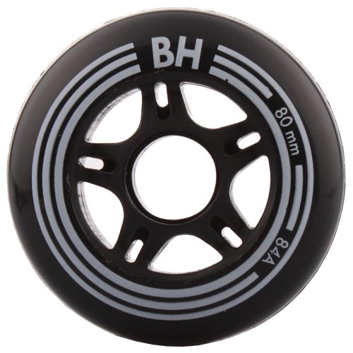Náhradné kolieska pre kolieskové korčule BH Black majú novú vylepšenú zmes doplnenú o prísady zvyšujúce hustotu, vďaka ktorej sa predĺžila ich životnosť a nájazd km. Ďalším pozitívom je komfortnejšia jazda s lepšou priľnavosťou na všetkých druhoch povrchov. Tento model má priemer 80 mm, tvrdosť 84A, veľkosť stredu 50 mm, šírku 24 mm a sú určené pre ložiská 608 (ABEC). Sú vhodné pre mierne pokročilých a pravidelných korčuliarov. Uvedená cena je za 1 ks.