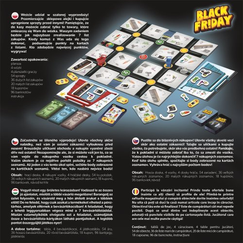Zúčastnite sa šialeného výpredaja! Ulovte všetky akčné ponuky, než vám ich ostatní zákazníci vyfúknu pred nosom! z vás túto úlohu splní, sčítajte body zobrazené na kartičkách zoznamov. Víťazí ten, kto nazbiera najviac bodov. Rozmer krabice: 26 x 26 x 4 cm.