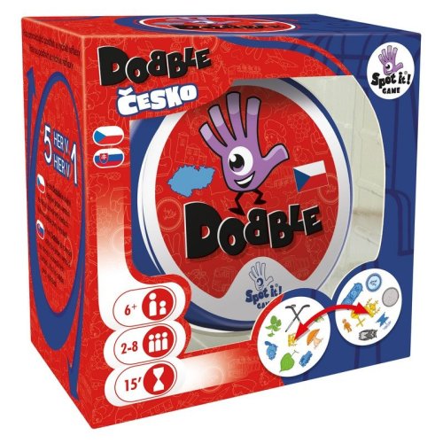 Populárna postrehová hra teraz na motívy Česka. Ikonické symboly z českého prostredia a histórie si obľúbi naozaj každý! Rýchlosť, postreh, reflexy! Dobble to je 50 rôznych symbolov, 55 kariet, 8 symbolov na karte a každé dve karty spolu majú spoločný iba jeden. Hra ponúka úplne unikátnu zábavu. Hráči tu hľadajú dva rovnaké symboly na kartách pri rôznych verziách hry (v pravidlách je popísaných celkom 5 hier). Super sú okrúhle karty aj jednoduché pravidlá vysvetlené doslova za pár sekúnd. Cieľová skupina sú deti aj rodičia – všetci, ktorí sa chcú poriadne baviť a nemajú čas prečítať dlhé pravidlá. Plechová krabička zaručuje bezpečie kariet a je aj ďalšou pridanou hodnotou. Vyskúšajte aj Vy hru Dobble a budete nadšení, ako aj tak jednoduchá hra môže byť zábavná.