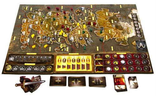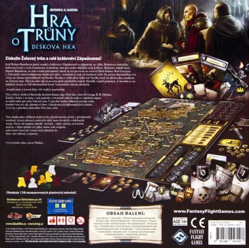 Hra o tróny je stolová hra podľa literárnej fantasy ságy Pieseň ľadu a ohňa od George RR Martina. Každý z hráčov v nej stane na čele jedného z mocných veľkých rodov av epickom zápase sa snaží získať pre seba Železný trón. V tejto hre budete plánovať postup vojsk, rozmiestňovať svoje sily, zúčastňovať sa bitiek aj chúlostivých diplomatických jednaní. A to všetko v pôsobivej atmosfére Piesne ľadu a ohňa. Táto už druhá edícia obľúbenej doskovej hry prináša mnoho prvkov z predchádzajúcich rozšírení, vrátane prístavov, rodových sídiel, kariet divokých a obliehacích strojov. Navyše tu nájdete niekoľko noviniek - napr. zásteny, za ktorými môžete v kľude spriadať svoje plány mimo zrak súperov, bitiek viac náhody a neistoty.