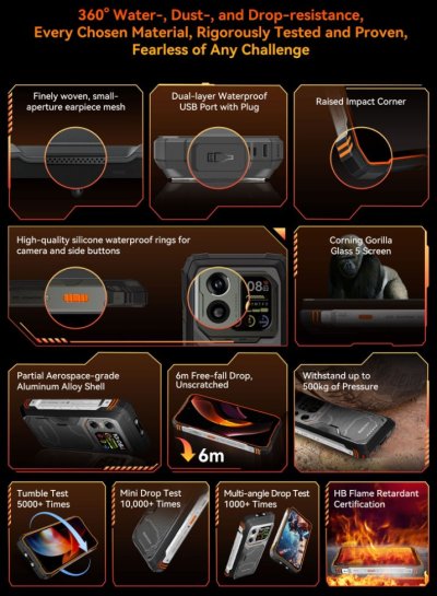 Odolnosť: IP68 & IP69K, MIL-STD-810H (voda, prach, pády, mráz, horúco)