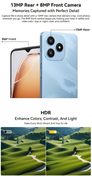 Cenovo dostupný chytrý telefón navrhnutý na každodenné používanie, komunikáciu a multimédiá. Kombinuje moderný design, veľký displej a dostatočný výkon pre bežné aplikácie, prehliadanie internetu, sociálne siete alebo sledovanie videa. Vďaka veľkej batérii a úspornému procesoru je vhodný ako spoľahlivý telefón na prácu i voľný čas.