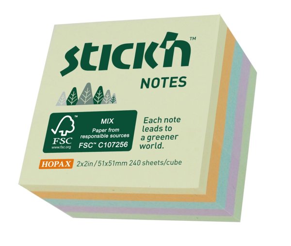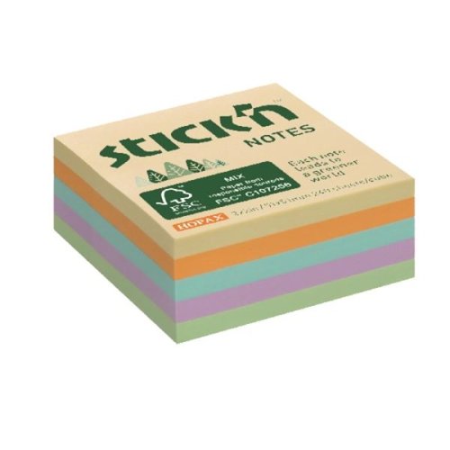 Samolepiace bloček v tvare mini kocky v mixe pastelových farieb Bločky sú vyrobené z papiera, ktorý pochádza z ekologicky obhospodarovaných lesov Certifikovaný papier šetrný k prírode využíva lepidlo na …