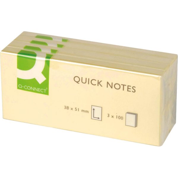 Bloček Q-Connect 38 x 51 mm, žltý, 3 ks