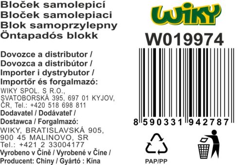 Bloček samolepiaci, 5x20 pruhov - Čísla