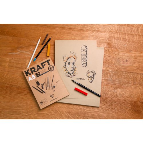 Umelecký blok Clairefontaine Brown Kraft má 100% prírodný a recyklovaný papier vhodný na najrôznejšie výtvarné techniky.