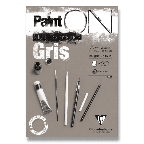 Blok Clairefontaine Paint on Grey má šedý jemne hrubý papier zo 100% celulózy.