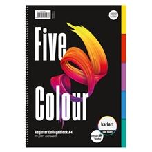 Poznámkový blok s tlačenými päťfarebnými registrami na pravom okraji, 20 listov v každej farbe