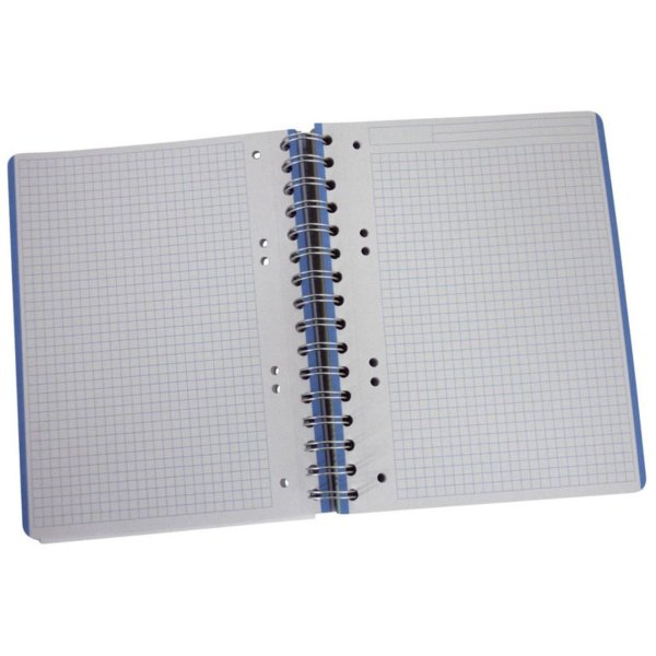 Kancelársky blok s farebnou ryhovanou obálkou z polypropylénu Biely bezdrevý papier 80 g Zaoblené rohy, 140 listov Listy majú mikroperforáciu pre ľahké odtrhnutie a 4otvorové dierovanie Kovová špirála Štvorček …