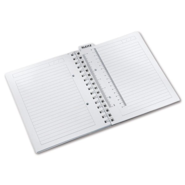 • Kvalitný krúžkový blok s pružnými doskami z polypropylénu obsahuje pravítko a vnútorné vrecko na uloženie voľných papierov