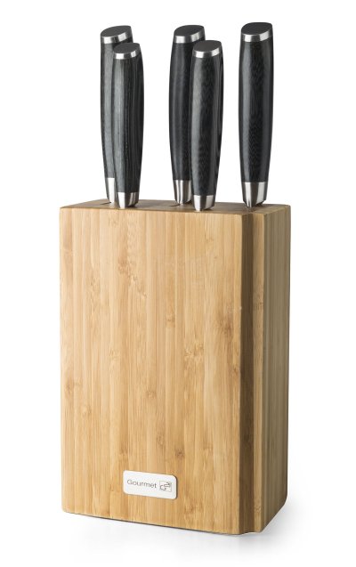 V bloku je 5 otvorov pre nože . Otvory sú veľkosťou prispôsobené pre sadu damaškových nožov G21 Gourmet Damascus. Do stojanu však môžete umiestniť akékoľvek kuchynské nože rovnakých rozmerov.