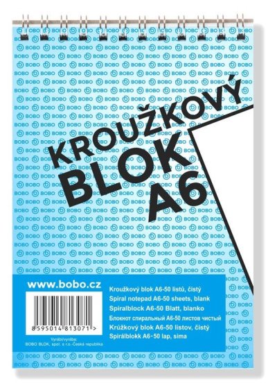 Klasický krúžkový blok vo formáte A6 obsahuje 50 čistých listov. br brPoznámkový blok v modernom dizajne s hornou krúžkovou väzbou obsahuje 50 čistých listov z bezdrevného papiera. Krúžková špirála umožňuje ľahké otáčanie a odtrhávanie stránok. Tento blok je ideálny na školské aj pracovné poznámky.