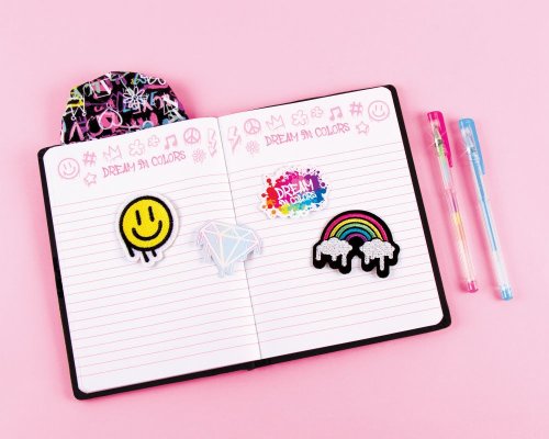 Dizajnový blok v štýle street look. Blok má na hlavných doskách kapucňu. Zapíš si do bloku tvoje zážitky alebo napríklad tajné sny. Súčasťou balenia sú dve perá, samolepky a lepiace nášivky. Vhodné pre dievčatá od 6 rokov.