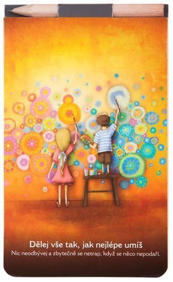 Formát 150 x 90 mm, čistý (nelinkovaný), lepený, ceruzka v bloku, magnet na zadnej strane, špeciálny knižný papier (Holmen book), motív Rob všetko tak, ako najlepšie vieš. <br><br> Poznámkový blok s ceruzkou a magnetom <br> • Krásna farebná obálka s ilustráciou od Lucie Ernestovej <br> • Vysoká gramáž papiera <br> • Krémový Holmen Book papier <br> • 40 čistých listov <br> • lepená väzba <br> • Formát zápisníka je 15 x Som ilustrátorka, grafička a mama dvoch chlapcov. Vymýšľam a vydávam hry šité na mieru detskému humoru a fantázii a tiež poznámkové bloky v krúžkovej väzbe. Kreslím inspiračné obrázky na dôležité životné témy, ktoré sa objavujú aj na obálkach zápisníkov, blokov alebo napríklad Vymaľovánok. Obrázky sa stávajú zrkadlom našich vlastných postojov a odrazovým mostíkom pre zaujímavé rozhovory. Sú bezpochyby vhodným pomocníkom pre všetkých múdrych rodičov a učiteľov, ktorým sa môžu stať sprievodcovia ich vlastnými pohľadmi na svet. <br><br> Holmen Book papier <br> Jedná sa o špeciálne knižné papiere, ktorý sa skvele hodí na písanie a kreslenie. Vďaka krémovému vzhľadu je príjemnejší na prácu ako klasický bielený papier. Holmen Book papier je síce drevitý, ale papier má hneď niekoľko certifikátov, ktoré zaručujú ekologicky šetrný papier voči prírode – FSC®, PEFC™ a EU Ecolabel.