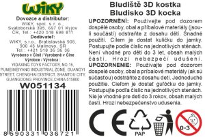 Bludisko 3D kocka. Veľkosť 9cm. Cieľom je dostať guľôčku do jamky. Je možné postupovať podľa číslic na jednotlivých stenách. 2 varianty - modrá, zelená.