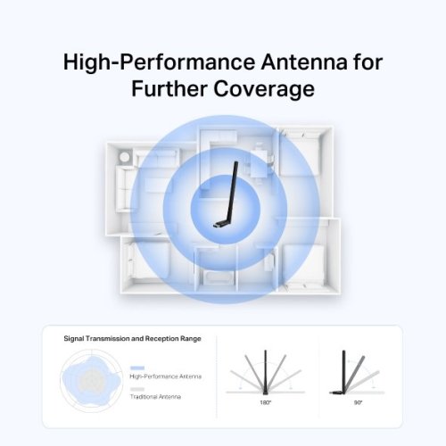 Nastaviteľná viacsmerová anténa zaisťuje silnejší príjem a väčší dosah signálu. Vďaka tomu je možné využívať adaptér aj vo väčších miestnostiach alebo kanceláriách.