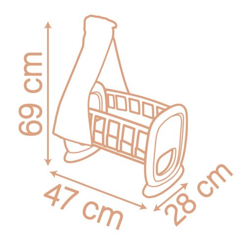 Kolíska pre bábiku Smoby Baby Nurse s látkovou strieškou je kolíska a postieľka pre bábiky zároveň. Látková strieška je snímateľná a prateľná, kvalitný plast sa dá ľahko očistiť vlhkou handričkou. Vhodné pre bábiky do 42 cm (bábika nie je súčasťou balenia). Tento výrobok obsahuje minimálne 62 % recyklovaného materiálu. Rozmery produktu (DxŠxV): 47x 28 x 69 cm.