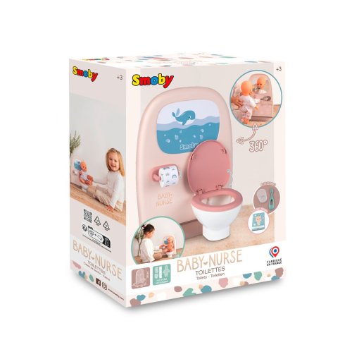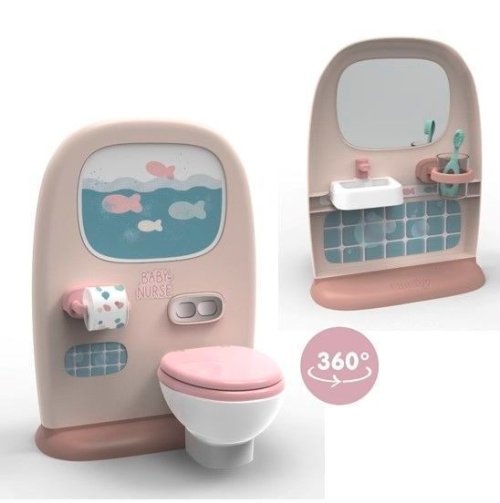 Kúpeľňa pre bábiky z radu Baby Nurse. Obsahuje toaletu, rolu toaletného papiera, umývadlo, zrkadlo, kefku na zuby a kelímok. Bábika nie je súčasťou balenia. Rozmery rozbaleného výrobku: 25 x 34 x 22,20 cm.