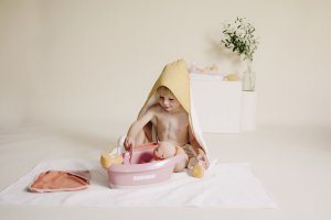 Vanička s opierkou hlavy pre bábiky Smoby Baby Nurse s elektronickou sprchou a bublinkovou funkciou so svetlom. Z automatickej sprchovej hlavice vytečie skutočná voda jednoduchým stlačením tlačidla. Vaňa má elektronický modul s 2 funkciami: uzavretý okruh vodnej trysky a bublifuk so svetlom. Polička ponúka dostatok miesta na uloženie vloženého príslušenstva: osušky z bavlneného froté, fľaštičky na šampón s pumpovacou funkciou a teplomeru v tvare veľryby. Teplomer je citlivý na teplo, pri kontakte s vodou mení farbu. Vhodné pre bábiky do 42 cm. Bábika nie je súčasťou balenia. Rozmery (DxŠxV): 40 x 30 x 23 cm.