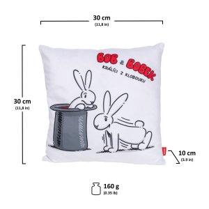 Bob a Bobek, Vankúš cvičiť. Veľkosť 30x30cm. Mäkučký vankúšik s motívom králikov z klobúka Boba a Bobka. Vhodný do postieľky, na cesty aj ako dekorácia do detskej izbičky. Materiál mikrovelúr, obrázok tlač, náplň duté vlákno. Pranie na 30 ° C, 100% polyester. Vyrobené ručne v SR.