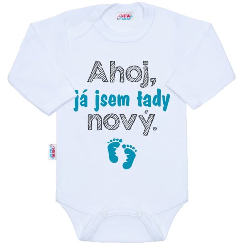 Originálne bavlnené dojčenské body s dlhým rukávom New Baby, s vtipným nápisom Ahoj, ja som tu nový. Farby použité na potlač sú certifikované a vhodné pre bábätká. Je vyrobené z príjemného a kvalitného materiálu, v ktorom sa bude Vaše bábätko cítiť príjemne. Body má zapínanie na cvočky na ramienku a medzi nožičkami, čo uľahčuje obliekanie a prebaľovanie. Doprajte Vášmu bábätku vyniknúť v originálnom bode. Zloženie: 100% bavlna. Rozmery: obvod okolo hrudníka cca 38 cm, dĺžka rukáva cca 21 cm, celková dĺžka cca 33 cm.<BR>- Produkt českej značky