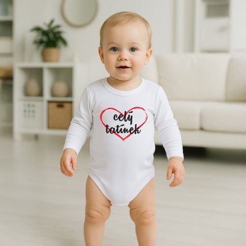 Originálne bavlnené dojčenské body s dlhým rukávom New Baby, s vtipným nápisom celý otec. Farby použité na potlač sú certifikované a vhodné pre bábätká. Je vyrobené z príjemného a kvalitného materiálu, v ktorom sa bude Vaše bábätko cítiť príjemne. Body má zapínanie na cvočky na ramienku a medzi nožičkami, čo uľahčuje obliekanie a prebaľovanie. Doprajte Vášmu bábätku vyniknúť v originálnom bode. Zloženie: 100% bavlna. Rozmery: obvod okolo hrudníka cca 34 cm, dĺžka rukáva cca 16 cm, celková dĺžka cca 30 cm.