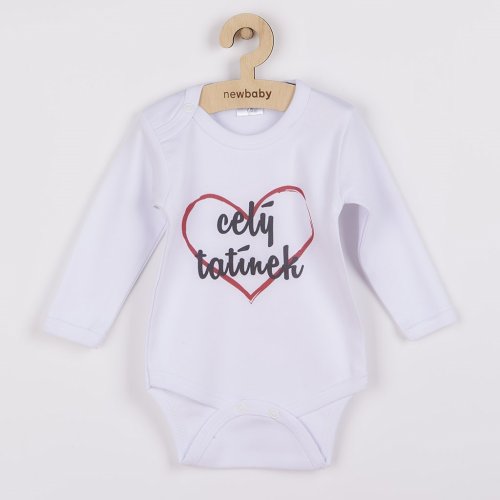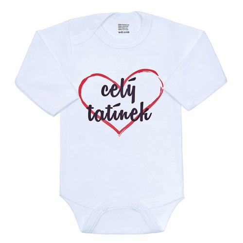 Originálne bavlnené dojčenské body s dlhým rukávom New Baby, s vtipným nápisom celý otecko. Farby použité na potlač sú certifikované a vhodné pre bábätká. Je vyrobené z príjemného a kvalitného materiálu, v ktorom sa bude Vaše bábätko cítiť príjemne. Body má zapínanie na cvočky na ramienku a medzi nožičkami, čo uľahčuje obliekanie a prebaľovanie. Doprajte Vášmu bábätku vyniknúť v originálnom bode. Zloženie: 100% bavlna. Rozmery: obvod okolo hrudníka cca 50 cm, dĺžka rukáva cca 26 cm, celková dĺžka cca 42 cm.<BR>Produkt českej značky