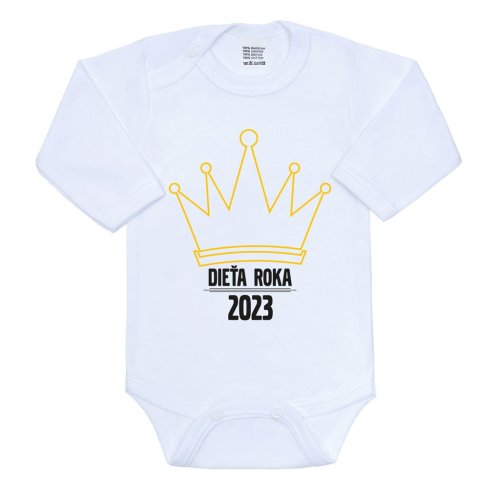 Originálne bavlnené dojčenské body s dlhým rukávom New Baby, s vtipným nápisom DIEŤA ROKA 2023. Farby použité na potlač sú certifikované a vhodné pre bábätká. Je vyrobené z príjemného a kvalitného materiálu, v ktorom sa bude Vaše bábätko cítiť príjemne. Body má zapínanie na cvočky na ramienku a medzi nožičkami, čo uľahčuje obliekanie a prebaľovanie. Doprajte Vášmu bábätku vyniknúť v originálnom bode. Zloženie: 100% bavlna. Rozmery: obvod okolo hrudníka cca 42 cm, dĺžka rukáva cca 23 cm, celková dĺžka cca 38 cm.<BR>Produkt českej značky