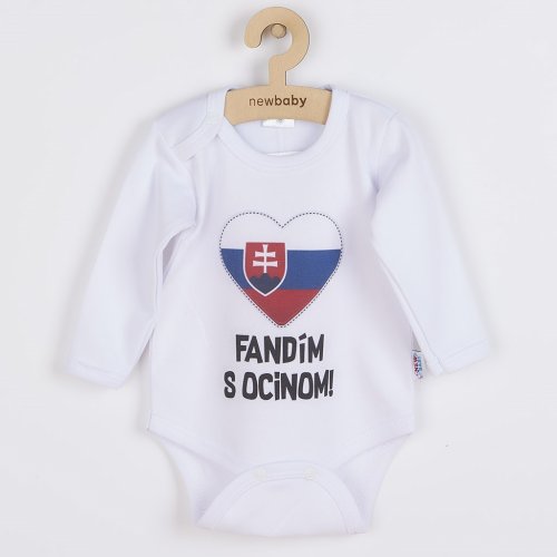 Originálne bavlnené dojčenské body s dlhým rukávom New Baby, s vtipným nápisom Fandím s ocinom a obrázkom slovenskej vlajky. Farby použité na potlač sú certifikované a vhodné pre bábätká. Je vyrobené z príjemného a kvalitného materiálu, v ktorom sa bude Vaše bábätko cítiť príjemne. Body má zapínanie na cvočky na ramienku a medzi nožičkami, čo uľahčuje obliekanie a prebaľovanie. Doprajte Vášmu bábätku vyniknúť v originálnom bode. Zloženie: 100% bavlna. Rozmery: obvod okolo hrudníka cca 34 cm, dĺžka rukáva cca 16 cm, celková dĺžka cca 30 cm.
