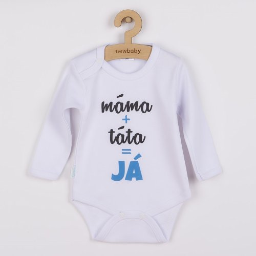 Originálne bavlnené dojčenské body s dlhým rukávom New Baby, s vtipným nápisom mama + otec = JA. Farby použité na potlač sú certifikované a vhodné pre bábätká. Je vyrobené z príjemného a kvalitného materiálu, v ktorom sa bude Vaše bábätko cítiť príjemne. Body má zapínanie na cvočky na ramienku a medzi nožičkami, čo uľahčuje obliekanie a prebaľovanie. Doprajte Vášmu bábätku vyniknúť v originálnom bode. Zloženie: 100% bavlna. Rozmery: obvod okolo hrudníka cca 50 cm, dĺžka rukáva cca 26 cm, celková dĺžka cca 42 cm.