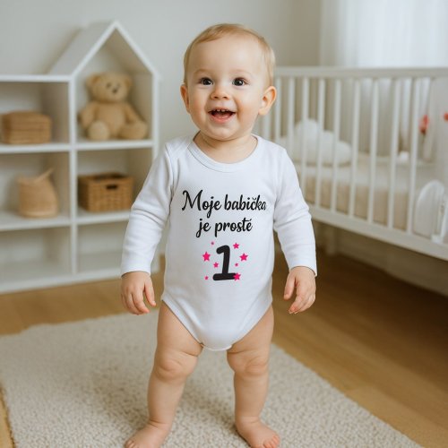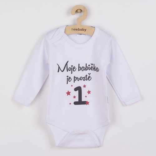 Originálne bavlnené dojčenské body s dlhým rukávom New Baby, s vtipným nápisom Moja babička je jednoducho jednotka. Farby použité na potlač sú certifikované a vhodné pre bábätká. Je vyrobené z príjemného a kvalitného materiálu, v ktorom sa bude Vaše bábätko cítiť príjemne. Body má zapínanie na cvočky na ramienku a medzi nožičkami, čo uľahčuje obliekanie a prebaľovanie. Doprajte Vášmu bábätku vyniknúť v originálnom bode. Zloženie: 100% bavlna. Rozmery: obvod okolo hrudníka cca 34 cm, dĺžka rukáva cca 16 cm, celková dĺžka cca 30 cm.