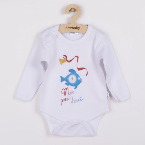Originálne bavlnené dojčenské body s dlhým rukávom New Baby, s vtipným nápisom Moje prvé Vianoce a obrázkom vianočného kapríka. Farby použité na potlač sú certifikované a vhodné pre bábätká. Je vyrobené z príjemného a kvalitného materiálu, v ktorom sa bude Vaše bábätko cítiť príjemne. Body má zapínanie na cvočky na ramienku a medzi nožičkami, čo uľahčuje obliekanie a prebaľovanie. Doprajte Vášmu bábätku vyniknúť v originálnom bode. Zloženie: 100% bavlna. Rozmery: obvod okolo hrudníka cca 34 cm, dĺžka rukáva cca 16 cm, celková dĺžka cca 30 cm.<BR>Produkt českej značky