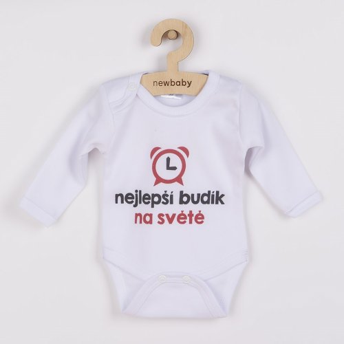 Originálne bavlnené dojčenské body s dlhým rukávom New Baby, s vtipným nápisom najlepší budík na svete a ilustrovaný budíček. Farby použité na potlač sú certifikované a vhodné pre bábätká. Je vyrobené z príjemného a kvalitného materiálu, v ktorom sa bude Vaše bábätko cítiť príjemne. Body má zapínanie na cvočky na ramienku a medzi nožičkami, čo uľahčuje obliekanie a prebaľovanie. Doprajte Vášmu bábätku vyniknúť v originálnom bode. Zloženie: 100% bavlna. Rozmery: obvod okolo hrudníka cca 46 cm, dĺžka rukáva cca 24 cm, celková dĺžka cca 40 cm.<BR>Produkt českej značky