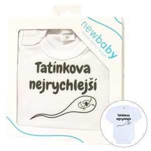 Originálne bavlnené dojčenské body s dlhým rukávom New Baby, s vtipným nápisom Otecko najrýchlejšie. Farby použité na potlač sú certifikované a vhodné pre bábätká. Je vyrobené z príjemného a kvalitného materiálu, v ktorom sa bude Vaše bábätko cítiť príjemne. Body má zapínanie na cvočky na ramienku a medzi nožičkami, čo uľahčuje obliekanie a prebaľovanie. Doprajte Vášmu bábätku vyniknúť v originálnom bode. Zloženie: 100% bavlna. Rozmery: obvod okolo hrudníka cca 34 cm, dĺžka rukáva cca 16 cm, celková dĺžka cca 30 cm.<BR>- Produkt českej značky