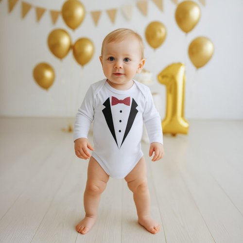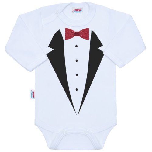 Originálne bavlnené dojčenské body s dlhým rukávom New Baby, s obrázkom smokingu. Farby použité na potlač sú certifikované a vhodné pre bábätká. Je vyrobené z príjemného a kvalitného materiálu, v ktorom sa bude Vaše bábätko cítiť príjemne. Body má zapínanie na cvočky na ramienku a medzi nožičkami, čo uľahčuje obliekanie a prebaľovanie. Doprajte Vášmu bábätku vyniknúť v originálnom bode. Zloženie: 100% bavlna. Rozmery: obvod okolo hrudníka cca 40 cm, dĺžka rukáva cca 22 cm, celková dĺžka cca 36 cm.<BR>- Produkt českej značky