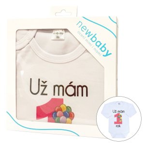 Originálne bavlnené dojčenské body s dlhým rukávom New Baby, s vtipným nápisom Už mám 1 rok a obrázkom veľké jednotky s balónikmi. Farby použité na potlač sú certifikované a vhodné pre bábätká. Je vyrobené z príjemného a kvalitného materiálu, v ktorom sa bude Vaše bábätko cítiť príjemne. Body má zapínanie na cvočky na ramienku a medzi nožičkami, čo uľahčuje obliekanie a prebaľovanie. Doprajte Vášmu bábätku vyniknúť v originálnom bode. Zloženie: 100% bavlna. Rozmery: obvod okolo hrudníka cca 46 cm, dĺžka rukáva cca 24 cm, celková dĺžka cca 40 cm.<BR>Produkt českej značky