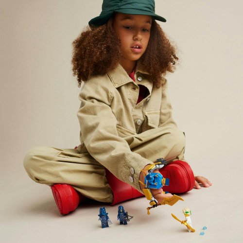 Deti od 6 rokov so stavebnicou LEGO® NINJAGO® (71805) Bojový balíček Jayovho robota znovu prežijú akčné bojové scény z 2. radu televízneho seriálu NINJAGO® Dračie povstanie. Súčasťou tejto nindžovskej stavebnice je robotický oblek s pohyblivými pažami, nohami a trupom, ktorý trojmá veľký zlatý meč a strieľa z 2 vystreľovačov.
