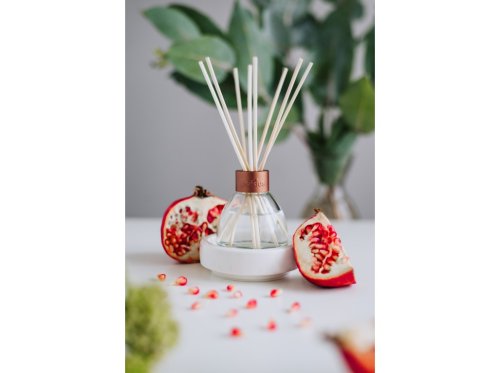 Elegantný vonný difuzér Bolsius s vôňou Peach (broskyňa) sa stane obľúbenou dekoráciou vo vašej domácnosti. Nechajte svoj domov predchnúť sviežou ovocnou vôňou broskýň, ktorá krásne prevonia váš domov. Vôňa sa začne uvoľňovať po vložení tyčiniek do difuzéra. Intenzitu vône si môžete nastaviť počtom tyčiniek v difuzéri. Vonný difuzér je vhodný aj ako darček pre vašich blízkych. Objem 45ml. Doba prevoňania 4 - 6 týždňov. Intenzita vône: jemná.