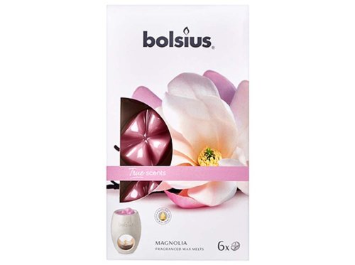 Vonné vosky Bolsius Aromatic True Scent - Magnolia očarí svojou čistou, ženskou vôňou kvitnúcich magnólií. Ideálne na relaxáciu alebo zútulnenie domova. Vosk sa rýchlo rozpúšťa a uvoľňuje vôňu plnú jemnosti a ľahkosti. Balenie so 6 dielikmi umožňuje jednoduché a opakované použitie.