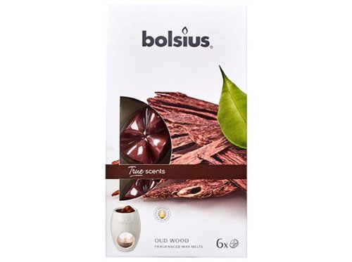 Vosk Bolsius Aromatic True Scent - Oud Wood zaujme zmyselnou kombináciou hlbokých drevitých tónov a ľahkého nádychu korenia. Ideálne na vytvorenie luxusnej a elegantnej atmosféry doma. Balenie obsahuje 6 kúskov, ktoré ľahko rozpustíte v aromalampe. Vďaka technológii je vôňa autentická, intenzívna a dlhotrvajúca.