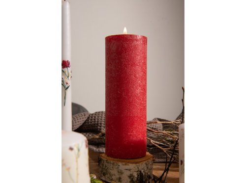 Rustic valec sviečka Bolsius v červenej farbe, ideálny pre prírodné dekorácie. Jej rozmery sú 68x190 mm.