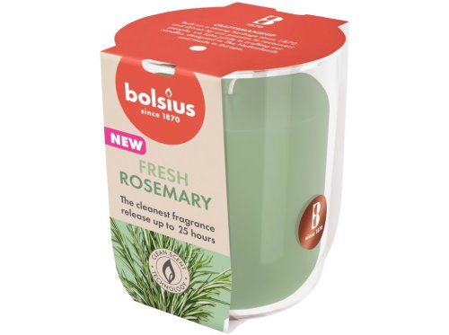 Vonná sviečka v skle. Sklenená nádoba má silné dno a pôsobí veľmi elegantne. Vonia sviežo, po rozmaríne. Sviečka z kolekcie True scents kombinuje ikonické vône s prírodnými výťažkami. Obsahuje prírodný vegánsky vosk a neobsahuje palmový olej. Vďaka pletenému bavlnenému knôtu má sviečka stabilný plameň a nefajčí. Doba horenia: 24 hodín. Rozmery: priemer 7 cm, výška 8 cm. Farba: zelená.