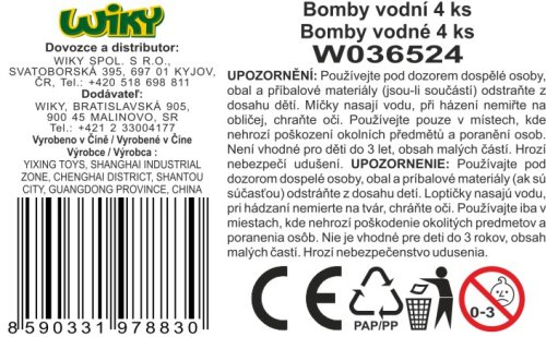 Bomby vodné 4 ks set. Loptičky majú priemer 7,5 cm. Balenie obsahuje 4 loptičky.