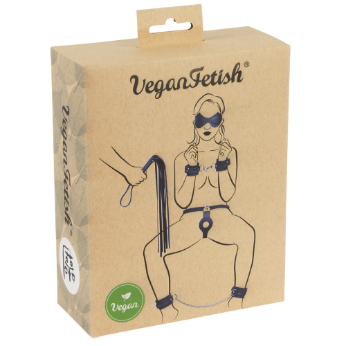 Päťdielna sada erotických pomôcok je vyrobená bez použitia živočíšnych materiálov. Sada obsahuje putá na ruky a nohy, nohavičky na prirobenie dilda, bič a očnú masku.