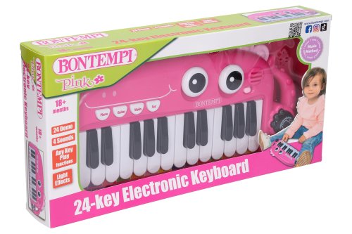 Bontempi Klavír elektronický ružový. 24 kláves. 24 demo skladieb, 4 zvuky, svetelné efekty. Batérie 3xAA/R6, 1,5V, nie sú súčasťou.