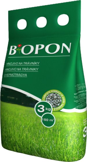 Jediným spôsobom, ako vypestovať zelený a hustý trávnik, je jeho pravidelné ošetrovanie. Časté kosenia prispieva k hustnutie drnov, ale tráva pri svojom intenzívnom raste rýchlo spotrebováva zložky obsiahnuté v pôde. Používaním BOPONU na trávniky obohacujeme pôdu najdôležitejšími výživnými zložkami. Trávnik vďaka tomu nezarastá burinou, znižuje sa počet prázdnych miest a intenzita výskytu machu. Pri zakladaní nového trávnika stimuluje jeho rast. Bujne rastúce trávu spočíta najmenej raz týždenne.