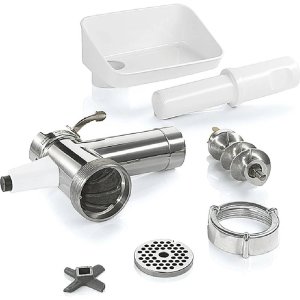 • Mlynček na mäso je viacúčelový: môžete zvoliť / dokúpiť aj ďalšie príslušenstvo, napr. nadstavec na výrobu striekaného pečiva alebo strúhací nadstavec.